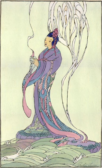 Bertha Lum imprimía primero una serie de grabados (no he sido capaz de determinar cuántas impresiones llevaba a cabo). Después, volvía a usar esas mismas planchas para grabar una segunda e incluso a veces una tercera remesa. Para cada nueva remesa indicaba en el « Copyright » el año en que se imprimió en lugar del de creación de la obra. Por lo tanto, no es de extrañar que figuren varias fechas para una misma imagen.